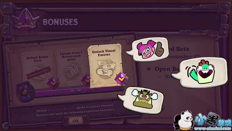 酒馆战棋模式从11月6日开启抢先体验,玩家只要购买了“巨龙降临”预购合集或持有暴雪嘉年华虚拟门票就能怎么得到测试资格;