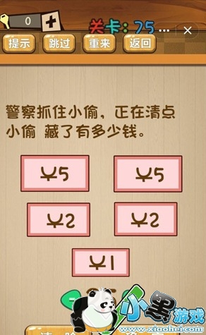 神脑洞的第75关需要玩家去清点小偷的赃款,但是很多玩家发现数目对不上,如果玩家仔细读题的话,就会发现小偷还有一笔钱是藏起来的,那么到底在哪里呢?