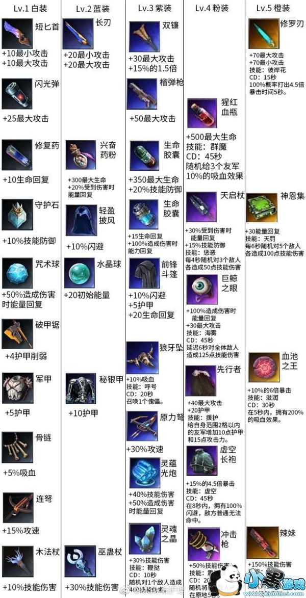 1.修罗刀,刺客阵容神装,蜥蜴,斧奴,幽灵机的最强武器,高攻满暴击技能配合阵容加成伤害不要太高。