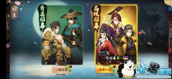 高级招募,产SR~UR评分护卫,抽奖道具用元宝购买获得,每招募10次必出SSR或UR