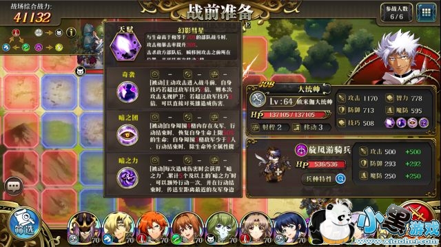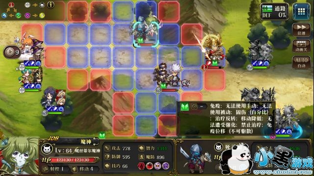 两个被动,一个是每回合提升5%除生命外的全属性,另一个是每次造成伤害给个buff,5个buff以后可以再动并传到队友身边。然后周围4格有友军就回复50%生命。所以这个buff最好驱散