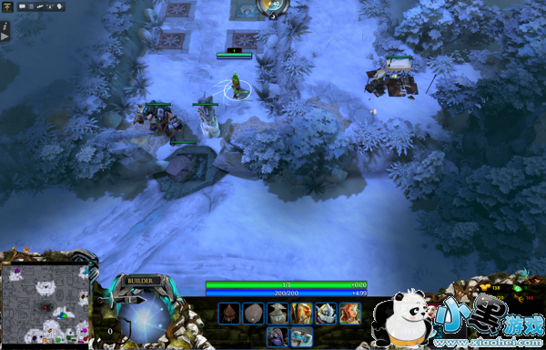 这是选定精灵时候的面板,但是excuse me!说好的精灵,给我弄个天辉近战兵是几个意思啊,一点都不萌,好丑!中间两行是精灵可以建造的单位,后面会一一详细介绍。最右边是精灵的技能,从左到右分别是缠绕,可用于控制巨魔,将他撸死或赶跑,第二个是沉默,跟缠绕配合使用,让巨魔开不出疾风步这种逃跑技能。第三个是加固墙用的。第二行第一个黑夜,没什么卵用,可能是趁着黑夜比较好跑路吧。第二个是闪现blink,跑路必备。最右边是资源数据。金币是最基本的资源,木头是后期强力的资源,当然这个地图里木头和金币可以方便的交换,你可以理解为木头是高级的钱。人口是后面维修工和出兵的前提,也是后期才很重要。