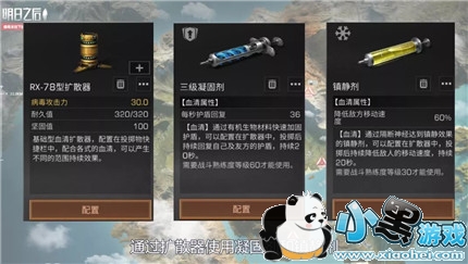 辅助武器:扩散器、氨基酸营养液、镇静剂、凝固剂