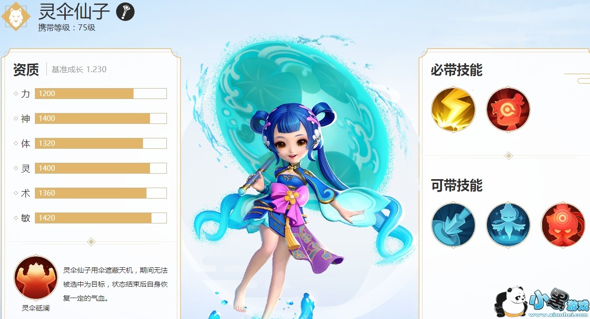 以上就是灵伞仙子的宝宝图鉴了,作为一个中高级法攻宝宝,她的携带等级也是75级,如果等级达不到的话,可是不能携带她的呢!小伙伴们快去升级哦~!