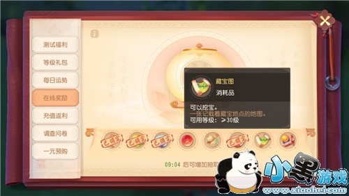 2、在线签到奖励:在每日的福利中有一个叫做在线奖励的玩法,玩家们在这游戏中在线一段时间什么候,就可以在这个在线奖励中怎么得到一个抽奖的次数,在这个抽奖的奖池中就有着一个藏宝图的任务奖励。
