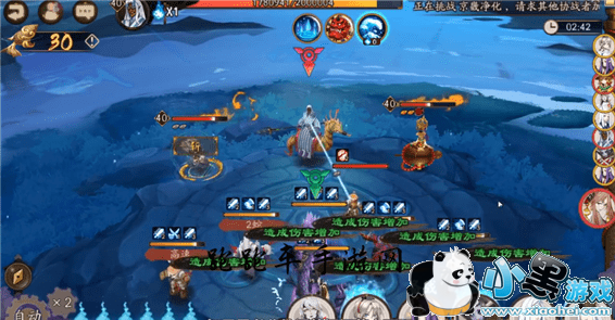 传统清佛队伍这边和昨天boss一样,只需要丑女标记boss放草人书翁诅咒草人,接着让两面佛疯狂输出即可。晴明手动控星灭buff可以提高一点输出,两面佛有200暴伤的针女歌伎即可轻松击杀。