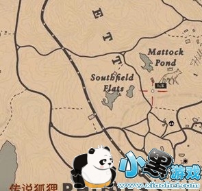 首先还是先为大家详细介绍一吓传说狐狸的刷新位置,图中红色标记的位置就是了,在Mattock Pond正南方不远处,我们骑着马匹很快就可以赶到,猎杀狐狸不需要注意时间什么候,它不像浣熊夜晚才开始出来活动,所以我们白天也可以去猎杀。