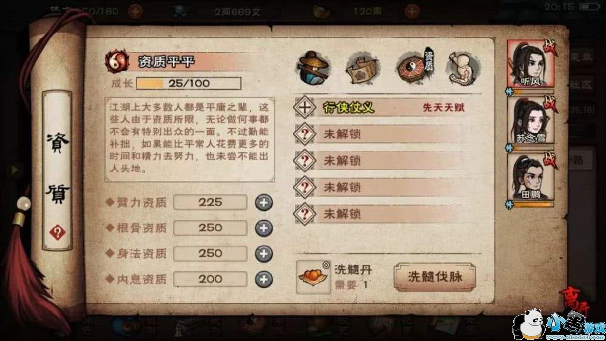 3. 肉盾型:根骨加到溢出很多,内息加到接近满,补一些身法,臂力不加。适用情况:纯肉,挂debuff,工具人。(大阴阳掌、摧心开山各种掌法、血衣陶)。
