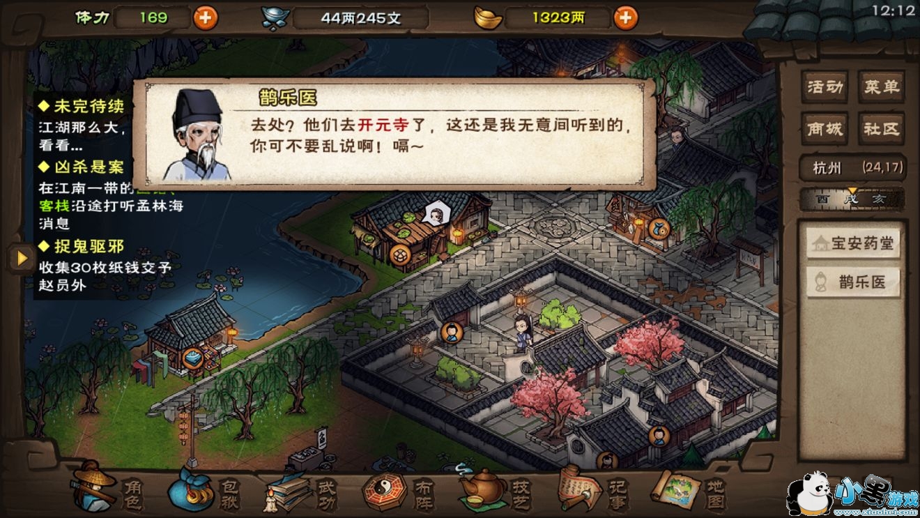 双王镇逍遥武馆(20.24)找祁昕策打听,去韩宅(12.16)找韩老爷打听,之后在找韩老爷购买玻璃瓶;