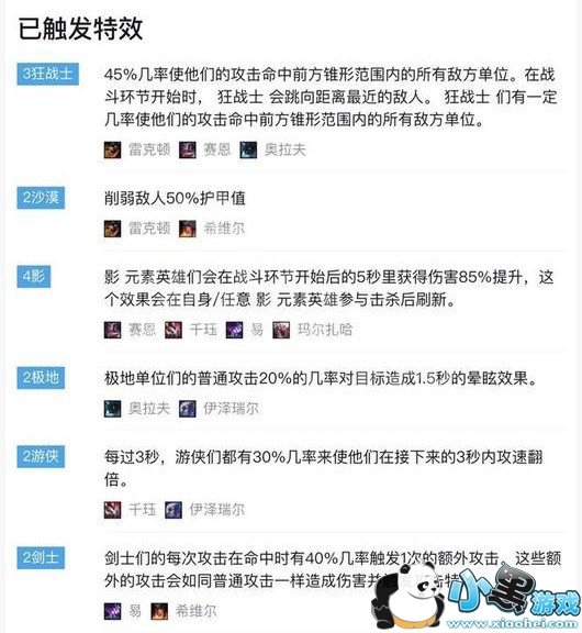 其中核心羁绊为:3狂战、2沙漠以及4影。