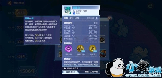 雷霆马属于远程型宠物,虽然外表作为独角兽很拉风但是其实稀有的品级并不算高,所以入手难度估计也不大。