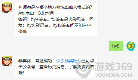 药师兜是在哪个地方修炼出仙人模式的?答题:hy+答案,5月21日火影忍者手游每日一题的答案是什么?不知道的学员们,进来看看正确答案吧!回答正确即可领取豚豚为大家准备的丰厚奖励了