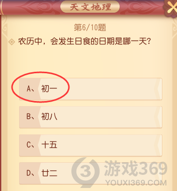 农历中会发生日食的日期是哪一天?梦幻西游三维版科举乡试答题中问了这样一个问题,小黑游戏为大家带来正确答案,还不清楚的小伙伴们一起来看看吧~