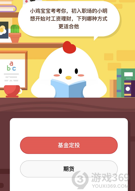 小鸡宝宝考考你初入职场的小明想开始对工资理财下列哪种方式更适合他3月19日蚂蚁庄园每日一题的答案是什么?基金定投操作简单,更适合初入职场的工薪族哦!