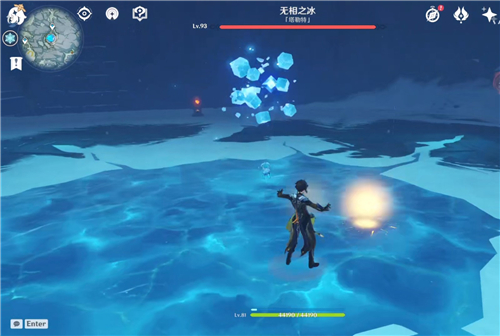 玩家如果有火属性的角色打起来会很轻松。地上蓝色的圈会冒出冰刺,出现的时候要注意躲避,不然很容易会掉很多血,残血的时候一不小心就被秒掉了。