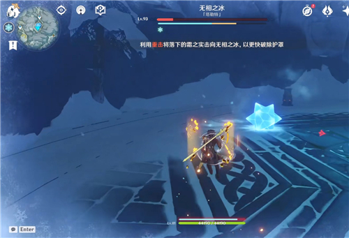 3、核心会吐出冰球(霜之石),我们使用任意角色,把这个冰球破了即可成功破盾;