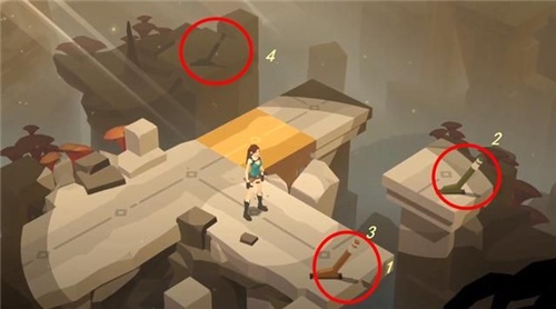紧接着来到一个比较复杂一点的关卡处,按照图中的顺序1234启动机关就能成功通关了。