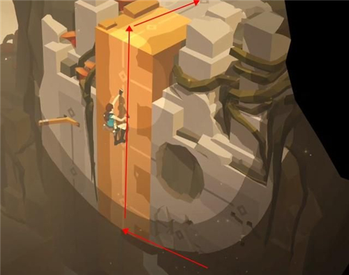 接着就会遇到一个断崖,我们爬上去触碰机关就能通过。