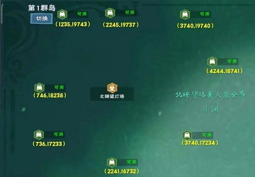 言归正传,上面的就是美女鱼的具体刷新位置,大家可以根据上面的图示位置进行寻找美女鱼,总体来说还是非常好找的,赶紧收集材料,来换取这个美人鱼套装吧。