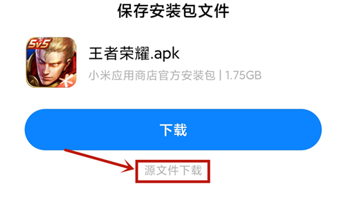 随后会跳转到手机自带的原生浏览器,会弹出一个下载窗口,注意千万别点下载,而是要点【源文件下载】。如果点击下载,那么下载的就是正式服版本的王者荣耀,因为应用中心是没有体验服版本的。