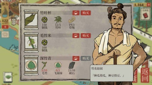 玩家需要先去河边找到竹农赵叔,向他用铜钱购买毛竹米,然后再去空白的田边消耗40体力种下毛竹米,即可收获毛竹资源。