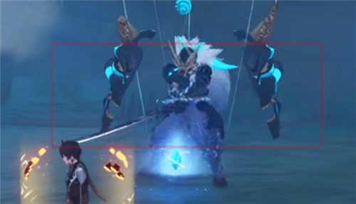 接着将手臂抬到脸部的时候,这个时候跑过去释放技能,将其击败。