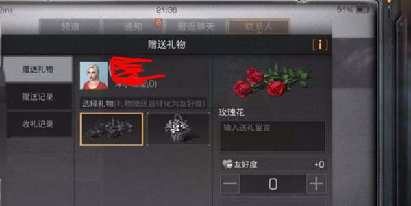 3、可以选择赠送玫瑰花或者其他物资,好友收到礼物后会转化为友好度。