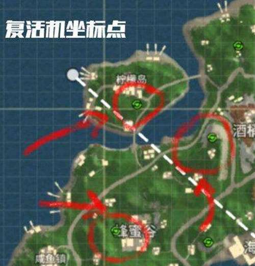 3、打开地图查看最近的复活机位置,图标就是下图所示的绿色小圆点。