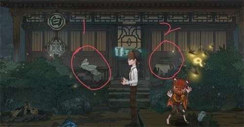 2.给鹤翁打水的碗在下图1位,水在2位。