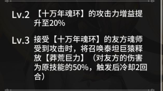 泰坦巨猿投入少收益大,造成生命上限伤害,输出消耗能力稳定。为队友加盾、群体破胆效果以及对输出添加10万年魂环等,大大增强我方输出的上限。