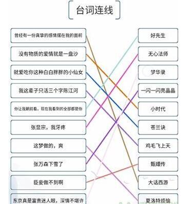 我的文字世界是最近抖音热门文字游戏,游戏中台词连线怎么过?这一关是根据一些台词找到对应的影视剧内容。下面是小编给大家带来的抖音小游戏《我的文字世界》台词连线通关攻略,没有通关的小伙伴们一起来看看吧,大家可以参考过关。