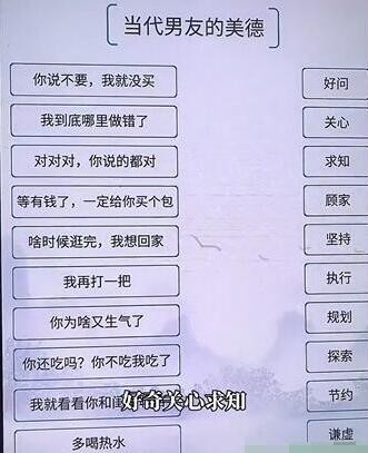 我的文字世界是最近抖音热门文字游戏,游戏中当代男友的美德怎么过?这个关卡中需要根据不同的意思去进行连线。下面是小编给大家带来的抖音小游戏《我的文字世界》当代男友的美德通关攻略,没有通关的小伙伴们一起来看看吧,大家可以参考过关。