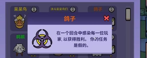 1.鹅鸭杀鸽子胜利条件是在一个回合中感染每一位玩家,以获得胜利。