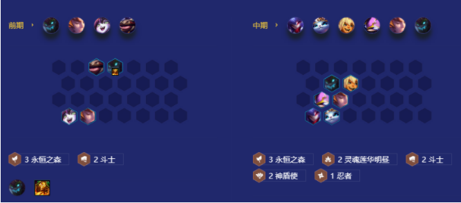 前期过度推荐斗士搭配永恒之森过度,有日炎直接合,又肉又有输出。