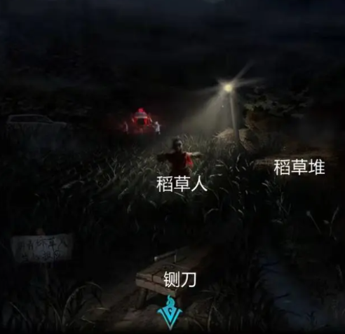 拾取飘带,飘带就在农田的稻草人身上,用铡刀把飘带割成三段,对着稻草堆使用三段飘带把它捆起来,让它变成一捆稻草。
