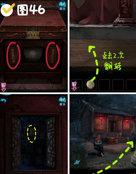 4、到最后看到柜子上写着“身着红罗裳,对镜理红妆”,把镜子放在供桌子上,旋转新娘雕像,拿到祈愿牌子后对话,一直对话完就通关了。