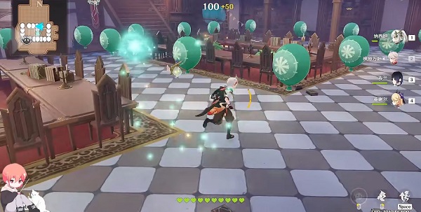 2、进行挑战的时候除了气球就要注意绿色的光点进行收集,收集之后就可以用于普通攻击将史莱姆气球进行摧毁。