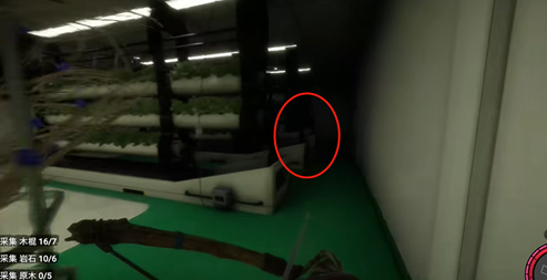 具体的位置呢就是第二排植物架的右手边,我们可以看见一具尸体,然后十字弩就在这具尸体的旁边。