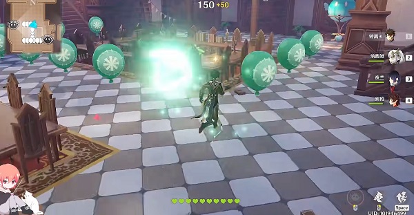 1、玩家进入到游戏中之后,左转下楼梯,接着就可以根据小地图的位置去吃气球。