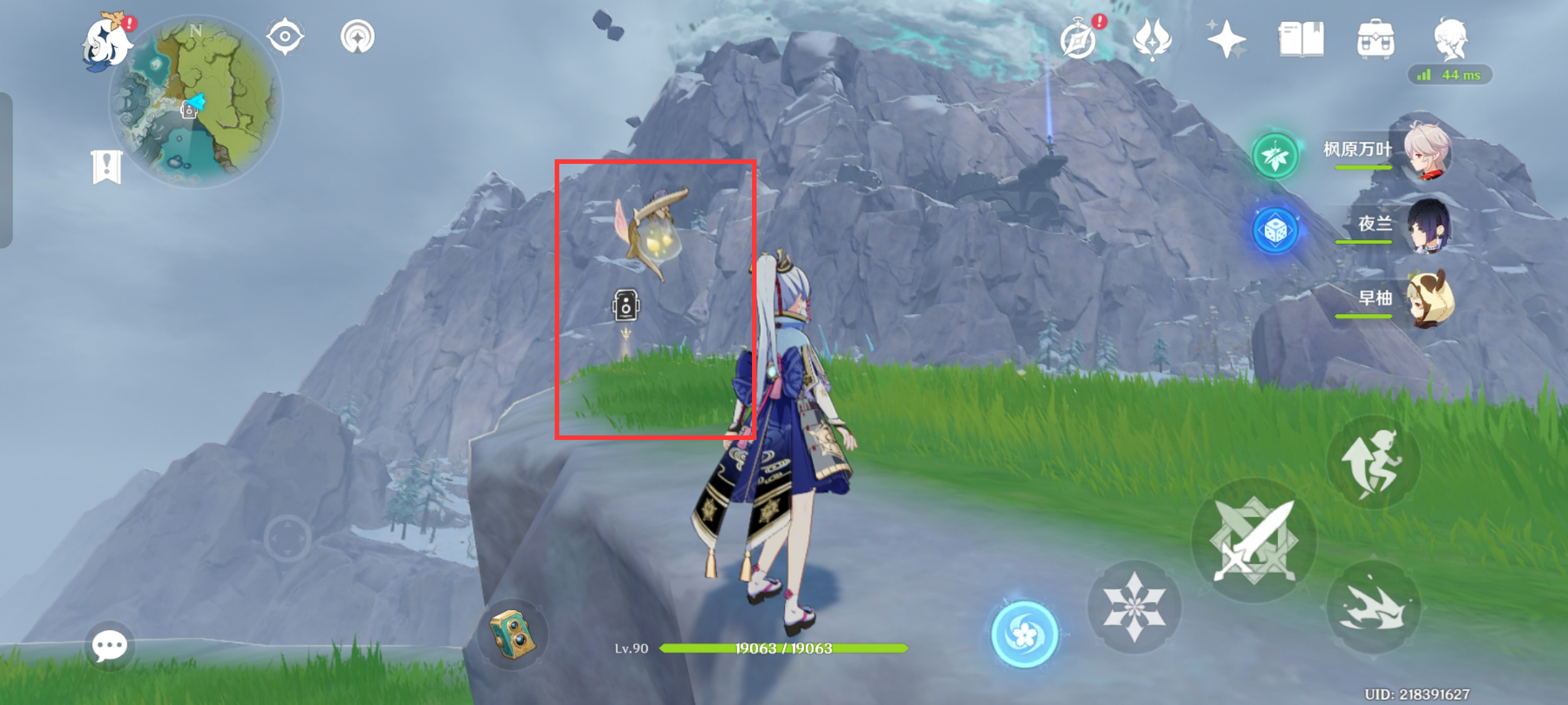 如图所示,来到图中七天神像,然后向东方飞行(地点在悬崖边上):