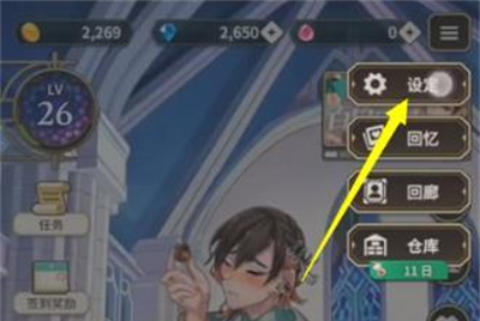 1、首先玩家进入游戏,我们进入设定界面