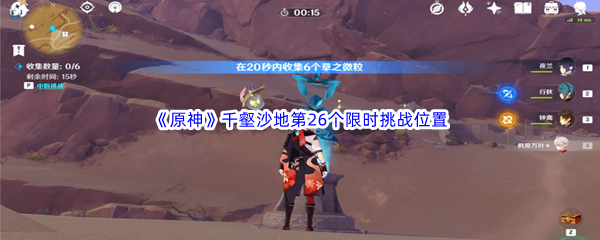 原神千壑沙地第26个限时挑战位置介绍,原神中千壑沙地第26个限时挑战位置在三运河之地的左上角,玩家们来到山坡悬崖边,在20秒内收集6个草之微粒。接下来就让小编来给大家详细介绍一下吧。