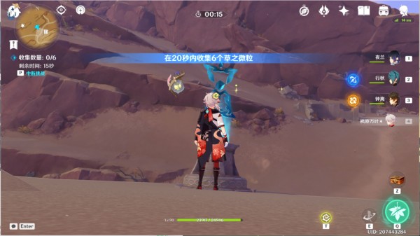 2、传送到三运河之地的左上角锚点,来到山坡悬崖边,在20秒内收集6个草之微粒即可完成。