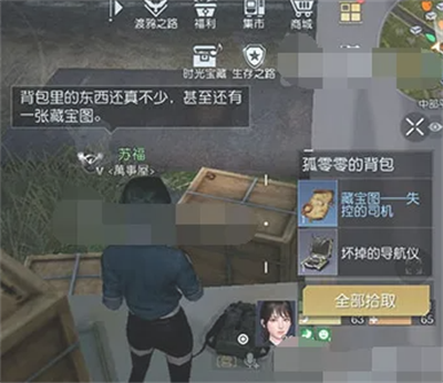 2、坐标点的墙角,可以找到背包,打开即可获得藏宝图。