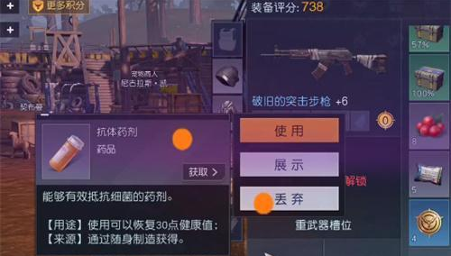 第二种:药剂,药剂恢复是在黎明觉醒种玩家恢复健康值最快速有效的一种方法了,在游戏中可以使用抗体药剂来快速的恢复玩家自身的健康只,还可以降低玩家的感染率,获得方法也是比较的简单,合成或者是购买都可以获得