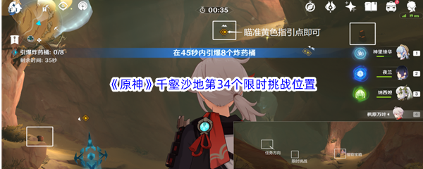 原神千壑沙地第34个限时挑战位置介绍,原神千壑沙地第34个限时挑战位置在秘境亡者之城的左下角,玩家们需要在45秒内引爆8个炸药桶,还是比较容易完成的。面小编给大家详细介绍下,还不清楚的小伙伴们快来看看吧。