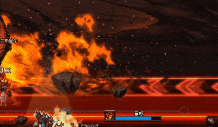 第3阶段变身后启动,全场释放直线火焰燃烧并留下火焰地带