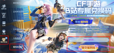 2、在精彩活动中点击福利码兑换,在这里就可以看见b站专属兑换的活动字样。