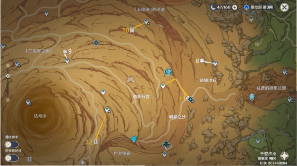 1、下图是千壑沙地第8个火把的解密路线图,玩家们可以按照下图指引走。