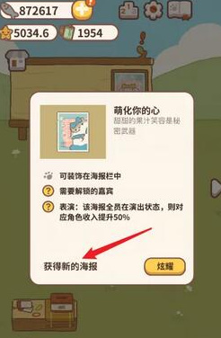 5、最后就可以获得新的表演者就会解锁新的海报,还可以在公告栏进行换装哦,获得方法还是比较简单的,大家快去试试吧。